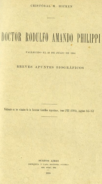 Doctor Rodulfo Amando Philippi : fallecido el 23 de julio de 1904 ; breves apuntes biográficos