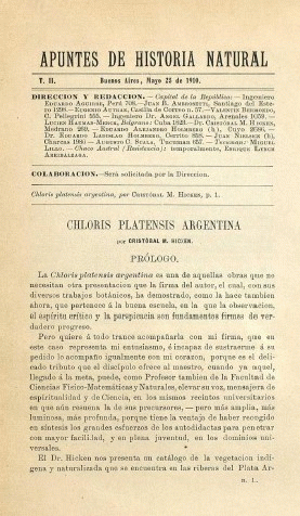 Chloris platensis argentina / Cristóbal M. Hicken, doctor en Ciencias Naturales, profesor de Botánica en la Universidad de Buenos Aires y en la Escuela Normal Superior. ; Trabajo presentado al Congreso Científico Intrenacional Americano reunido en Buenos Aires en 1910