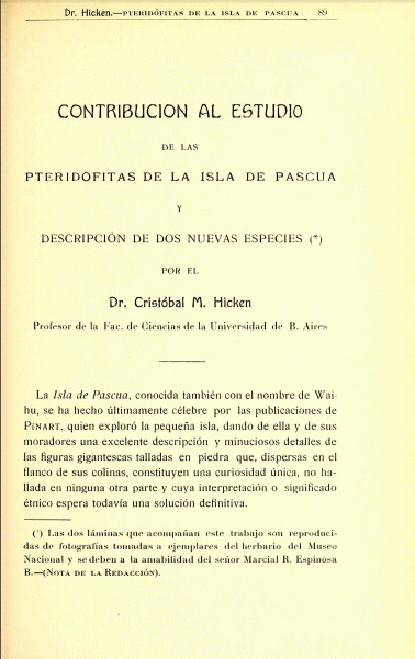 Contribución al estudio de las Pteridófitas de la Isla de Pascua y descripción de dos nuevas especies