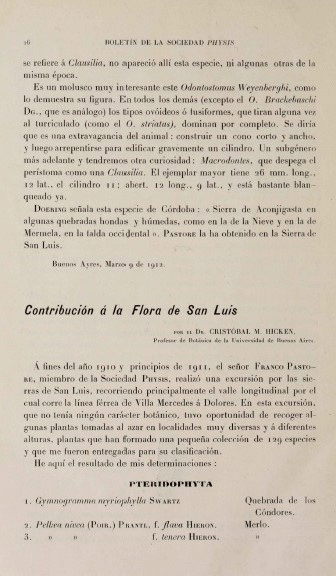 Boletín de la Sociedad Physis para el cultivo y difusión de las Ciencias Naturales en la Argentina Vol. 1, No. 1 (1912), p. 26-31.