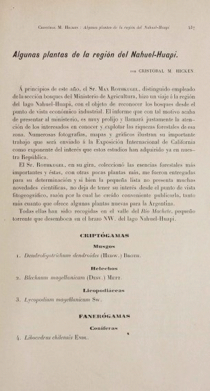 Algunas plantas de la región del Nahuel-Huapí